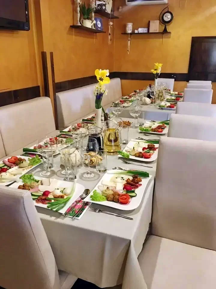 Are un restaurant elegant pentru 100 de persoane, unde ofera mese a la carte conform meniului.