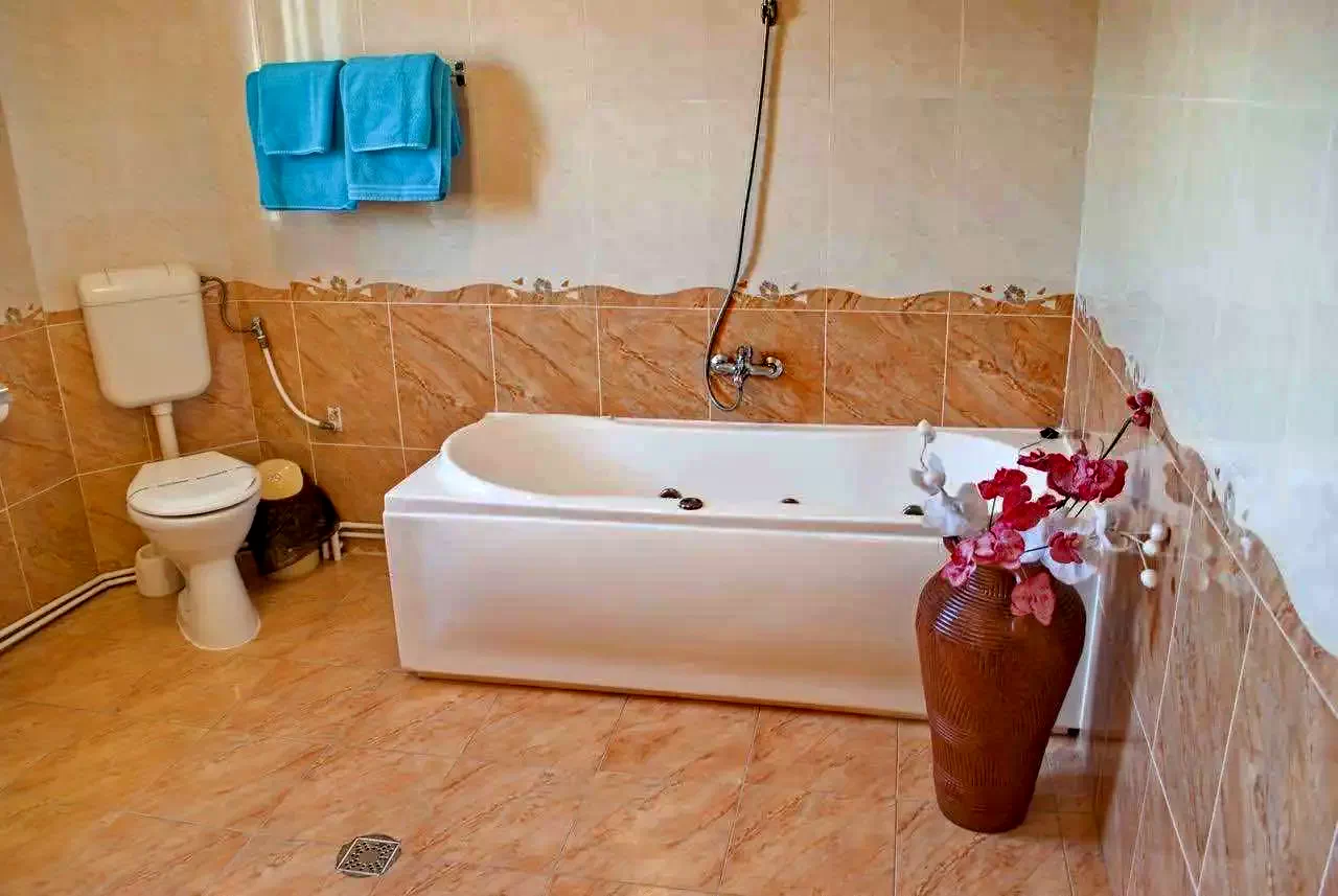Oaspeţii au la dispoziţie o bucătărie comună şi mic dejun continental. Pensiunea mai are un bar şi o terasă la soare