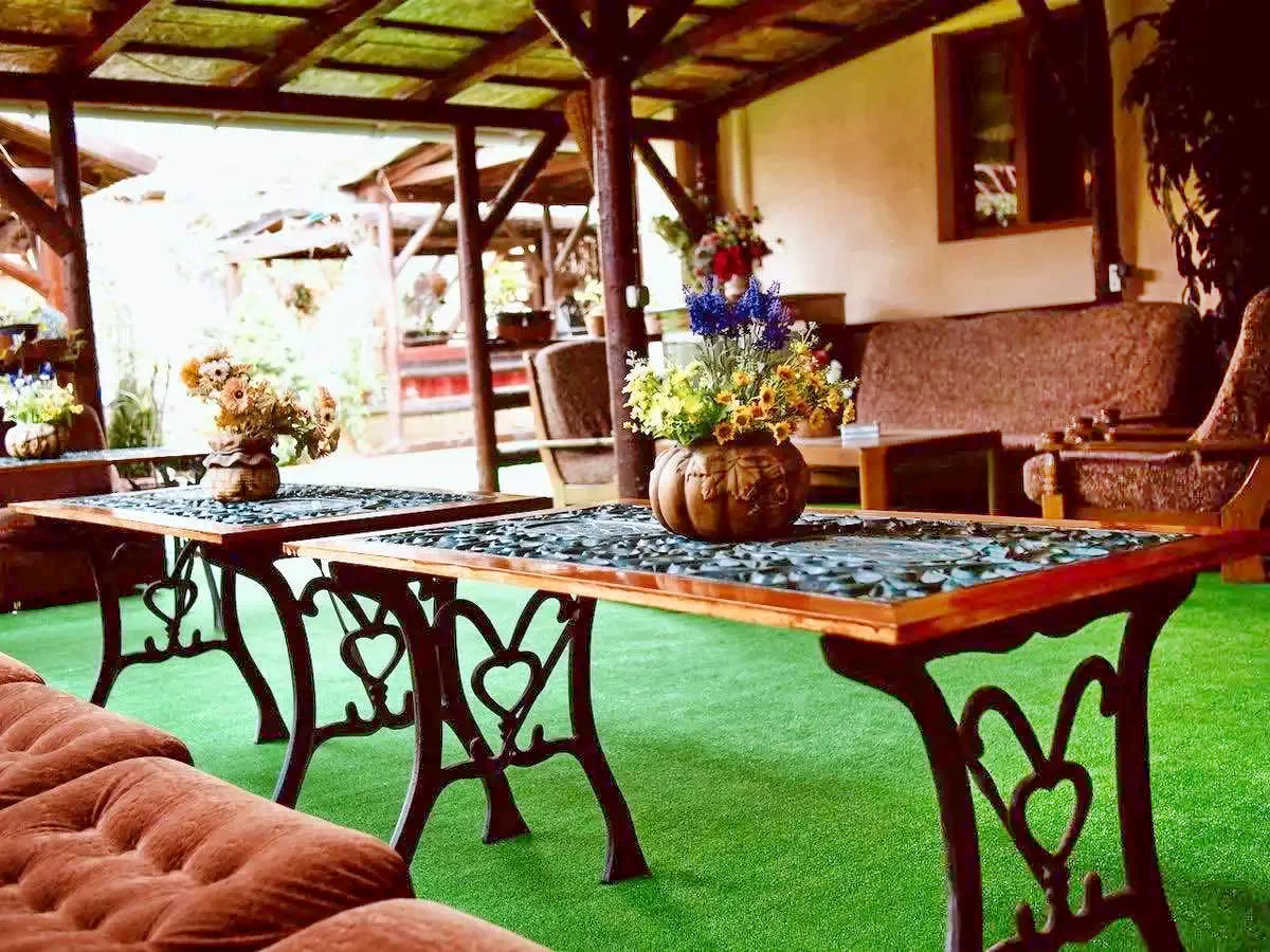 - Terasa pensiunii oferă o priveliște minunată asupra grădinii interioare, unde oaspeții pot savura micul dejun într-un cadru natural și liniștit, înconjurați de verdeață.
