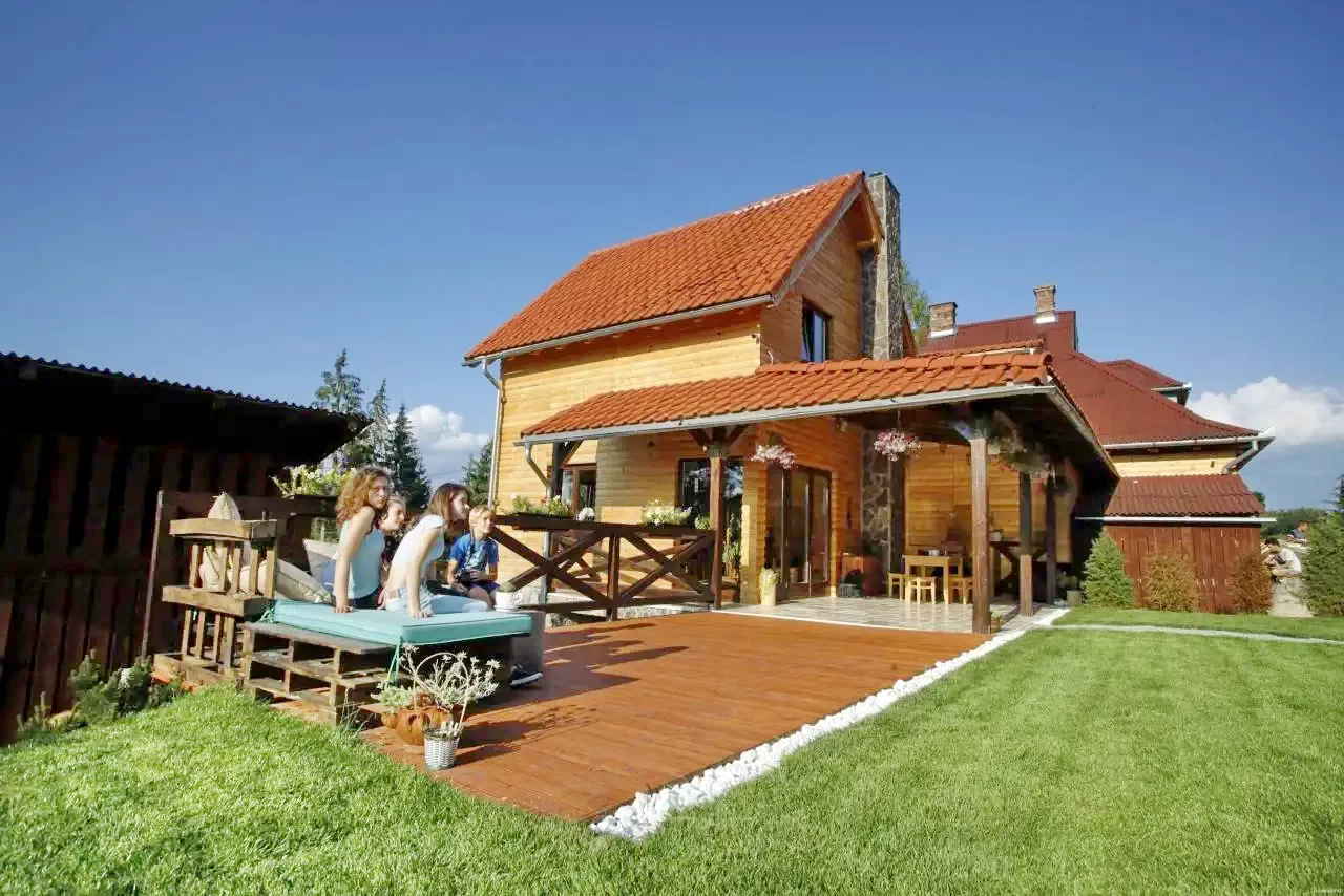 Dispune de gradina-curte cu zonă verde pentru luat masa în aer liber, ciubăr, zonă de picnic, terasă la soare, cuptor, grătar, ceaun, teren de joacă, trambulină si loc de parcare.