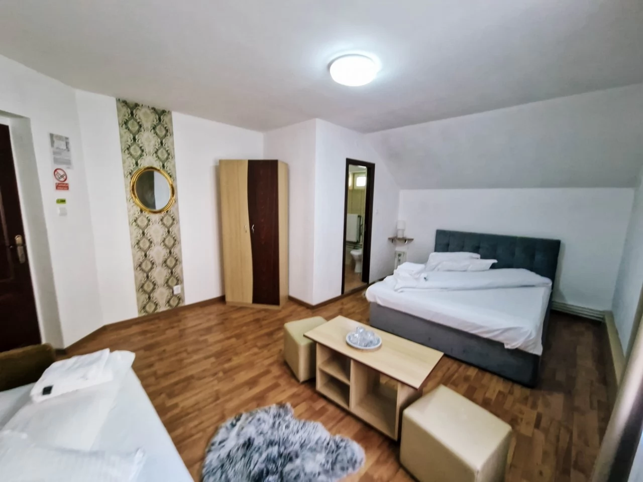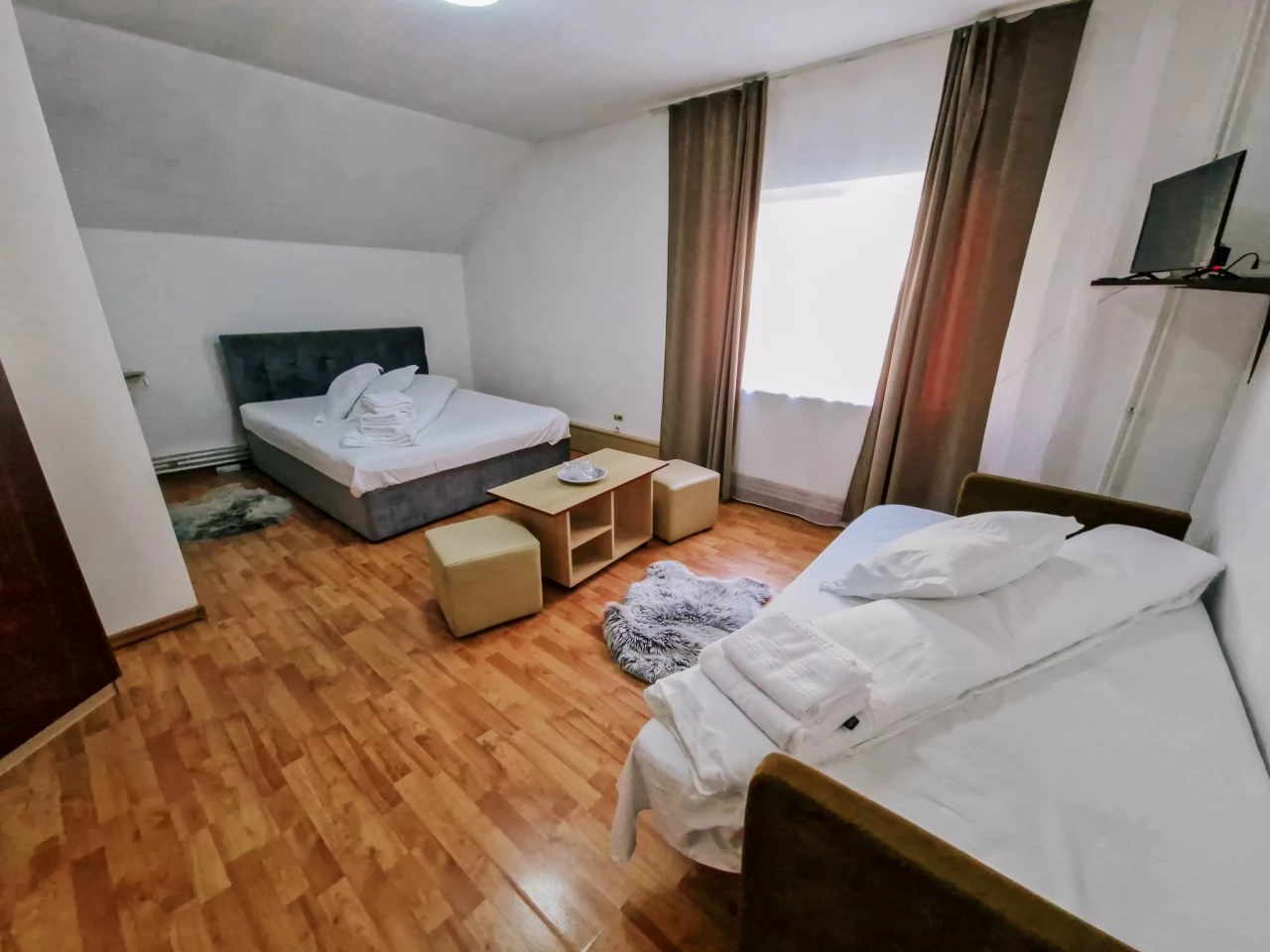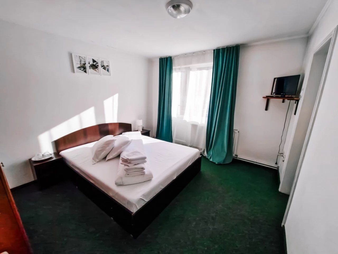 Dispune de 24 locuri de cazare, in 10 camere moderne, cu baie proprie in fiiecare camera, TV cu ecran plat si free WI-FI.
