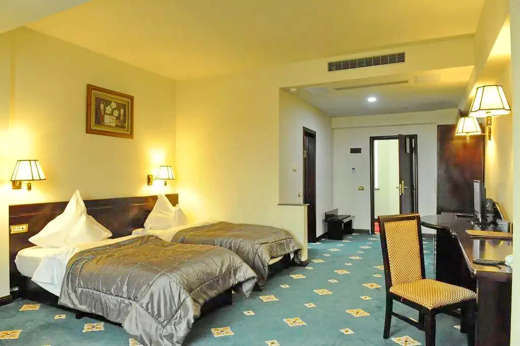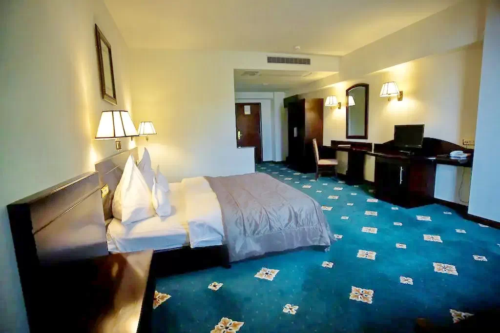 Hotelul pune la dispozitia turistilor 140 spatii de cazare dispuse pe 6 nivele, in 2 corpuri de cladire, dintre care 5 apartamente sunt Junior Suite, 7 camere Deluxe, 3 camere Superioare, 121 Camere Standard şi 4 camere Standard Comunicante!