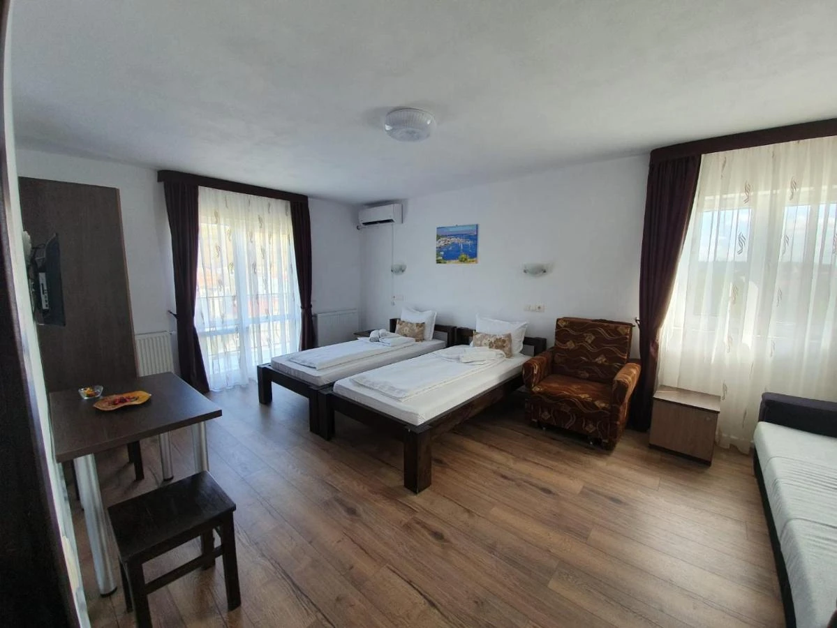 - Camere matrimoniale: Balcon, TV, frigider, baie cu duș.