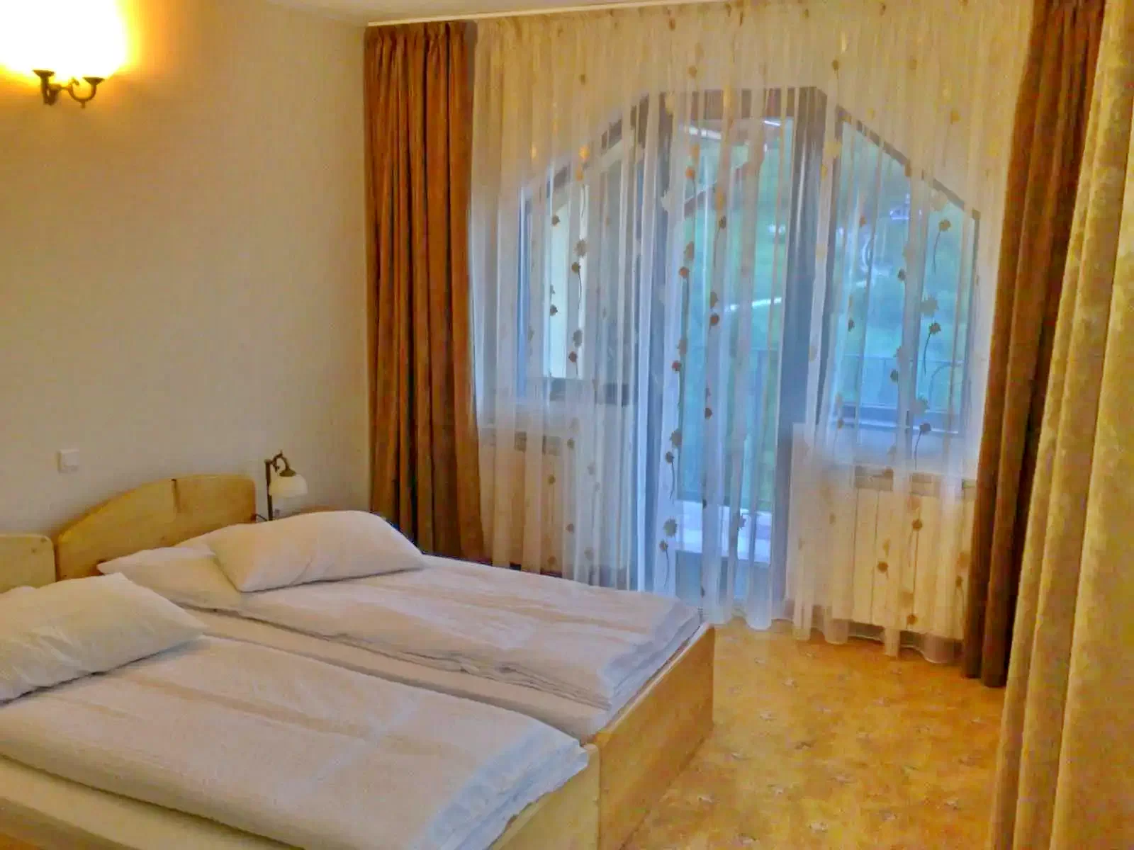 - Camera 7 (apartament): dormitor cu pat matrimonial + living cu 2 paturi separate + o canapea, baie proprie cu intrare din living.