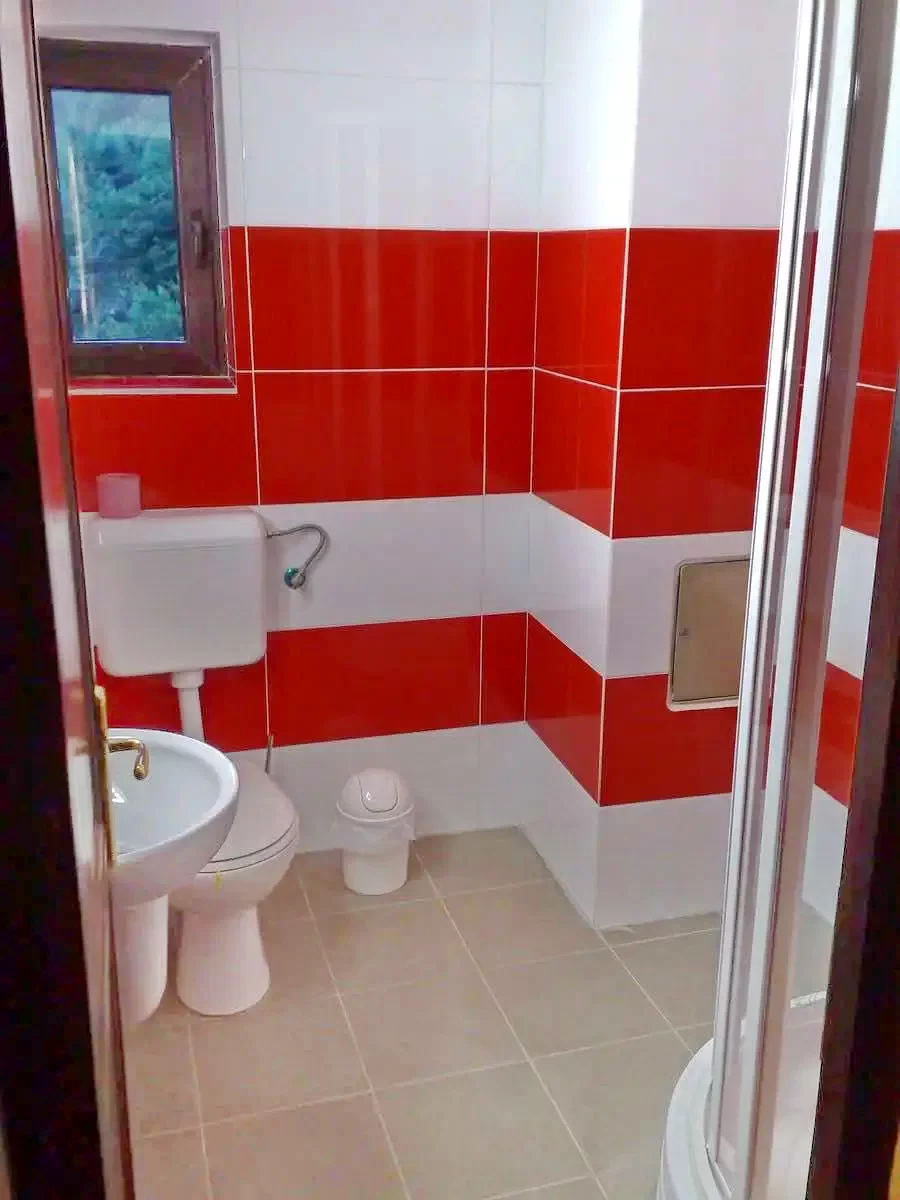 - Fiecare camera este dotata cu baie proprie cu dus. Apa calda in permanenta si caldura in timpul perioadei reci sunt asigurate prin centrala proprie.