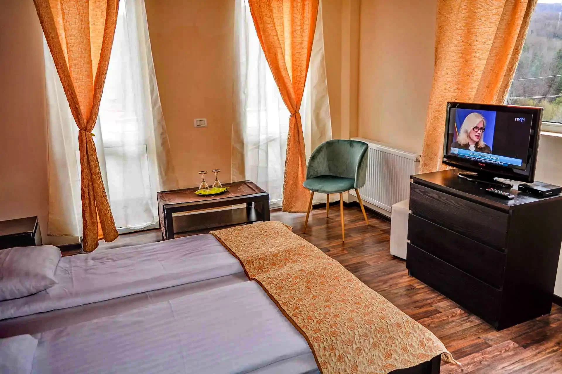 - Pensiunea dispune de 12 camere confortabil mobilate, echipate cu televizoare LCD, băi private și articole de toaletă gratuite.