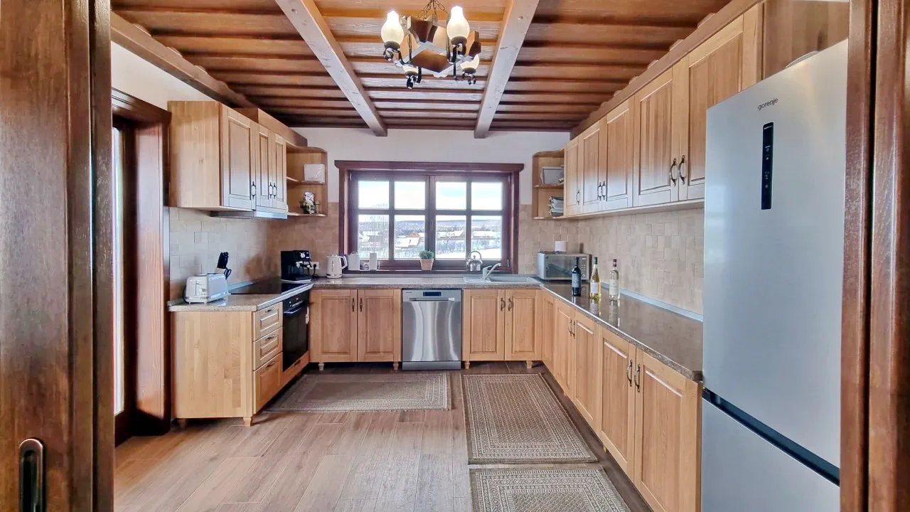 Pune la dispozitia oaspetilor bucătăria moderna, spațioasa si utilata adecvat, precum si un living spațios cu sufragerie.