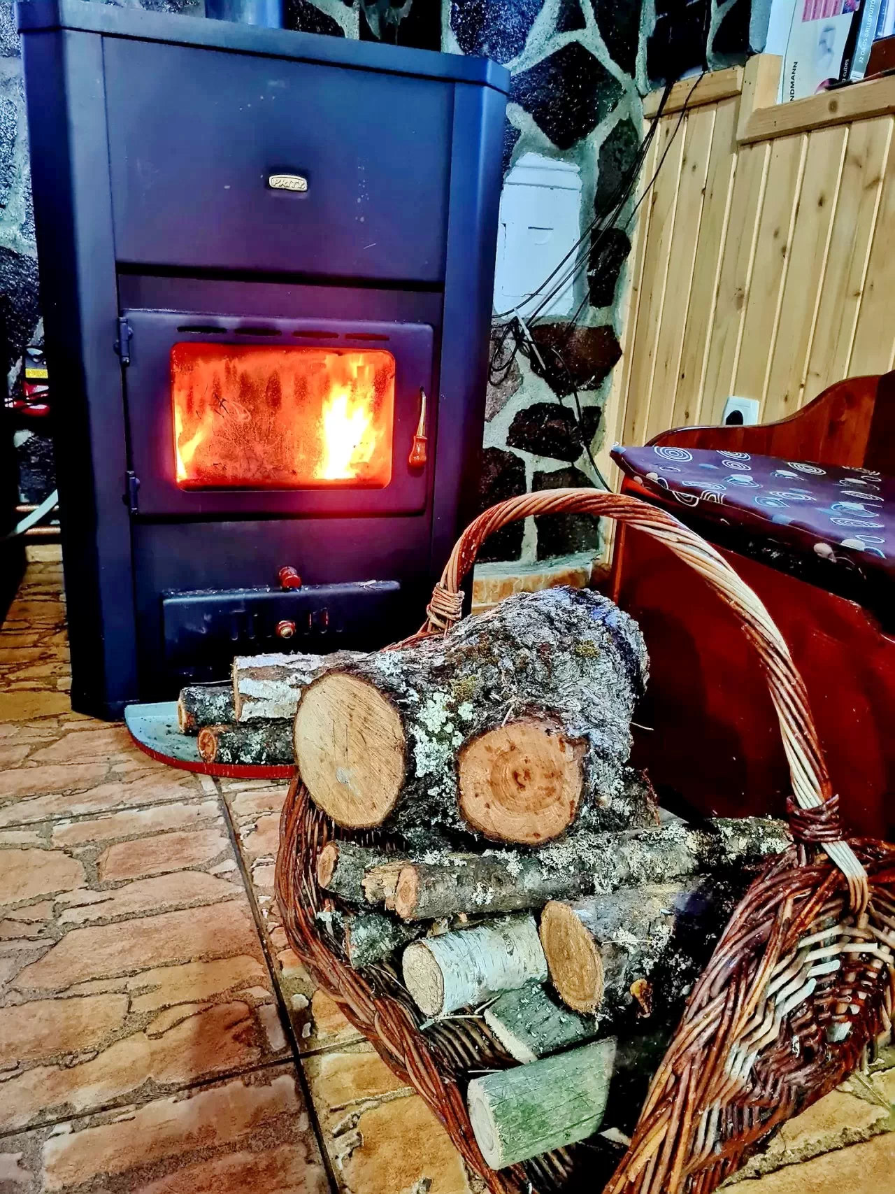 - Încălzire centrală și apă caldă asigurate de un șemineu pe lemne