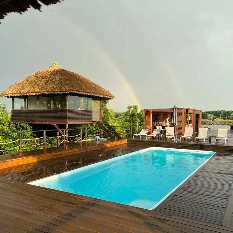 Pensiunea de lux se situeaza in Delta Dunarii, o lume minunata, salbatica, si va ofera clipe de neuitat, povesti de spus la focuri de tabere si se bucura de un amplasament generos de 3000 de metri patrati.