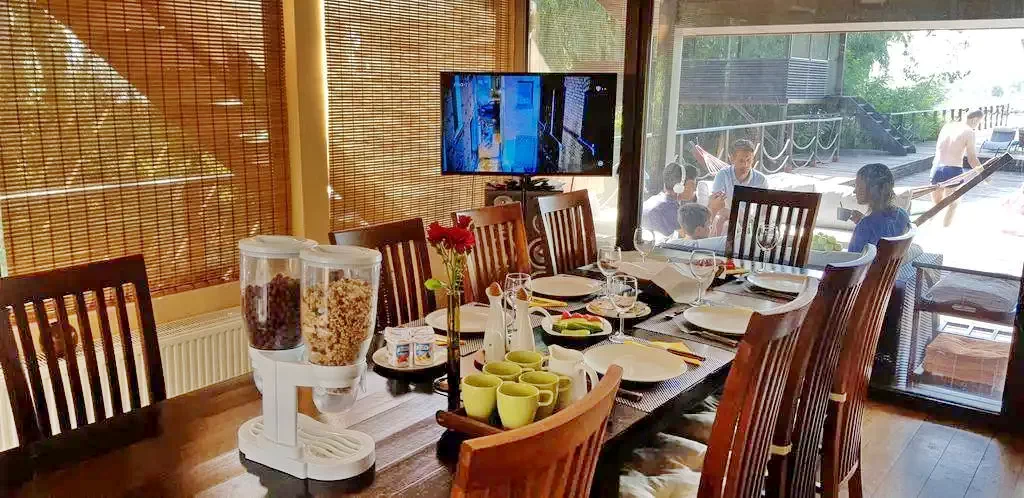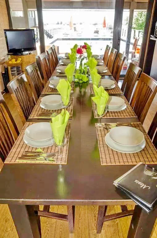 Mesele a la carte (mic dejun, prânz, cină) sunt disponibile la cerere în livingul și sala de mese luxoase.