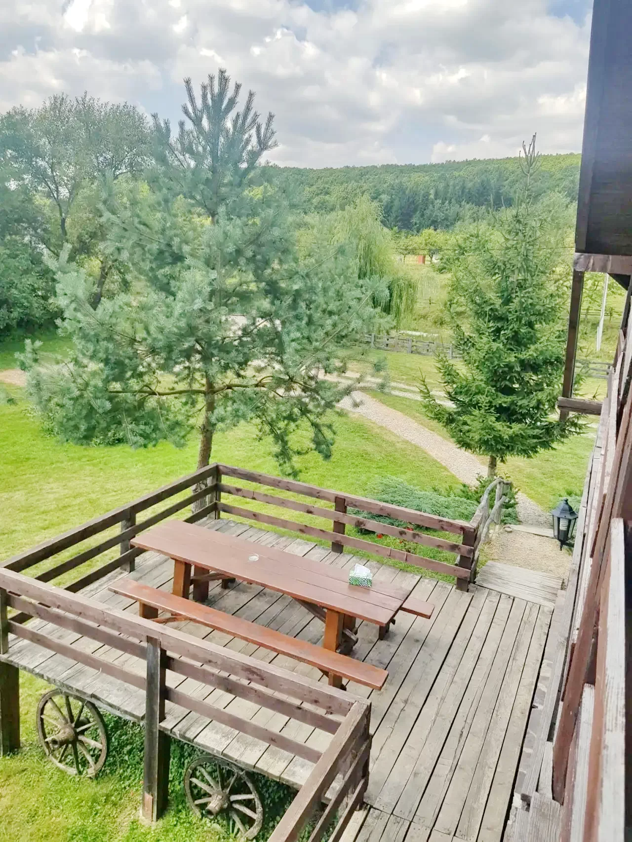 Pensiunea se desfășoară pe 1 hectar curte, care cuprinde, loc de joaca pentru copii, loc pentru foc de tabăra, mobilier de gradina, lac in curte cu posibilitate de pescuit. Acest lac, iarna se transforma in patinoar, iar cei pasionați de ski găsesc pârtia de schi Covasna la 9 km.
