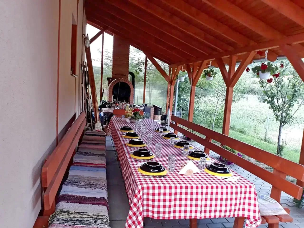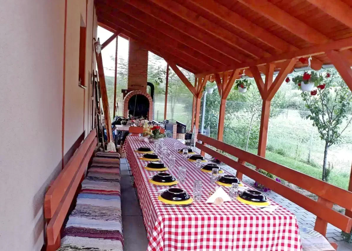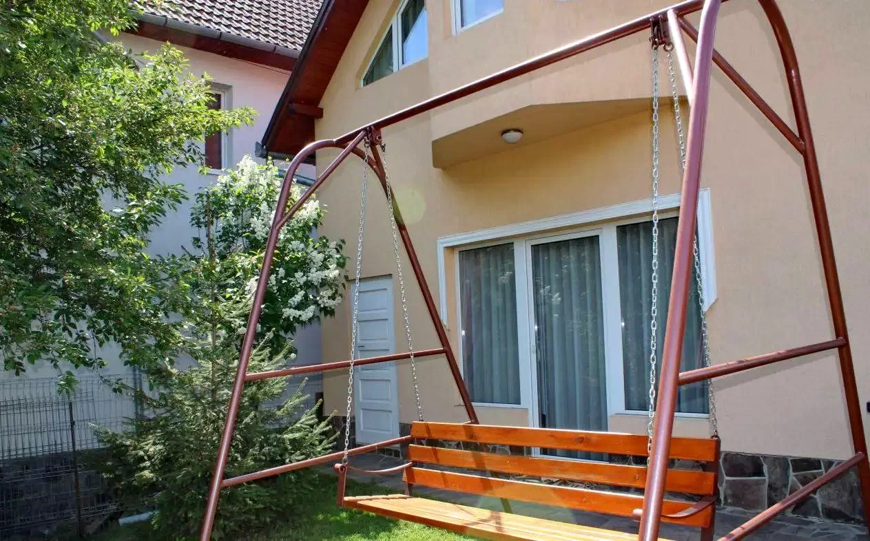 În curte, un foisor (20 persoane), un cuptor, loc de joaca pentru copii așteaptă vizitatorii, precum și o parcare închisă pentru mașini și microbuze.
