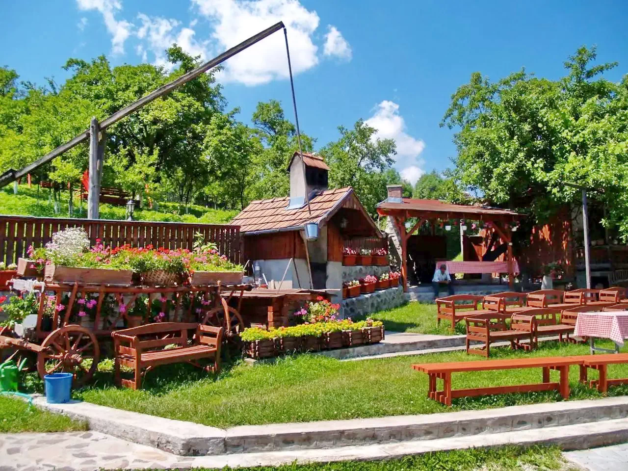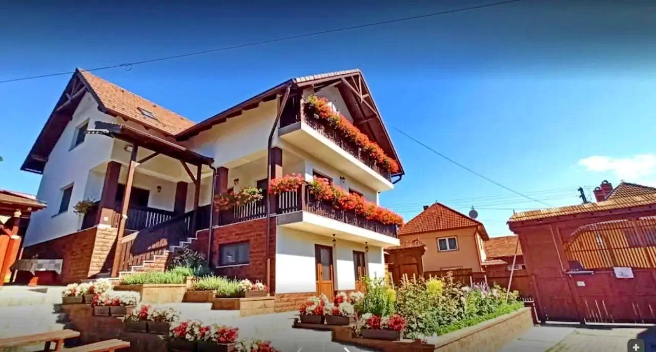 - Pensiunea este formata din 4 clădiri separate aflate intr-o curte amenajata împodobita de flori. Poate gazdui un total de 42 de persoane în 21 de camere duble frumoase.