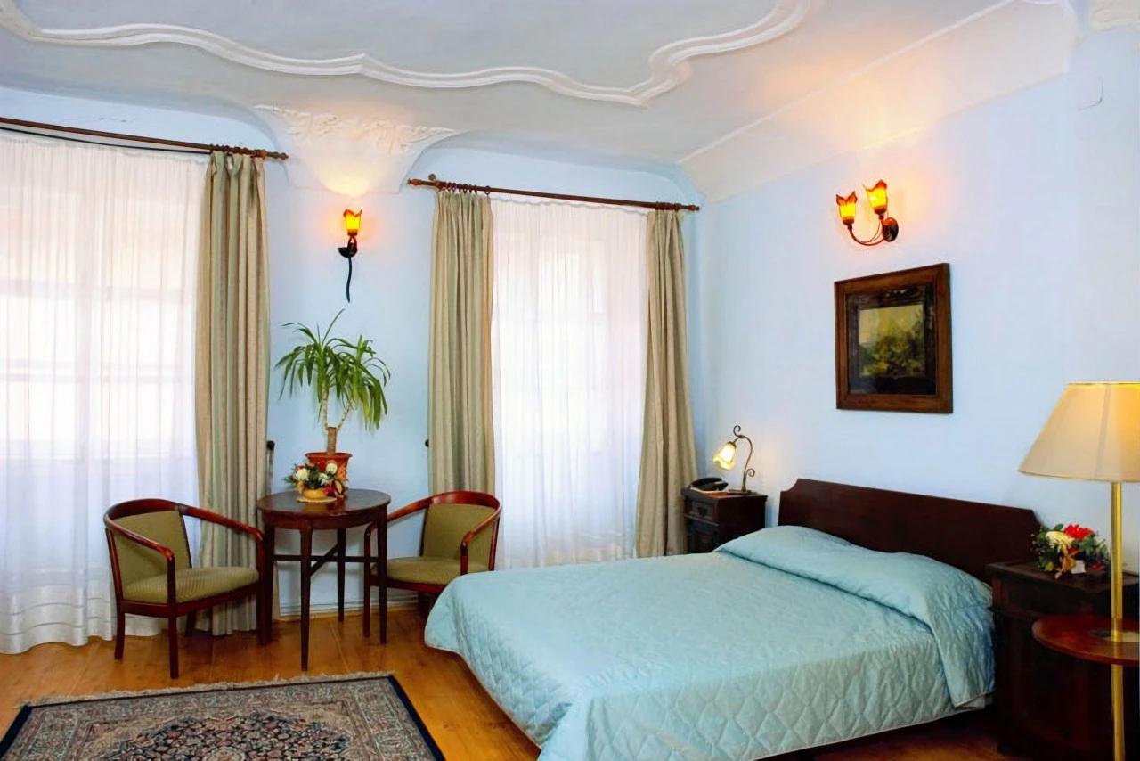 Cladirile apartin monumentelor istorice aflate in patrimoniul mondial. Camerele sunt mobilate cu mobilier antic sasesc.