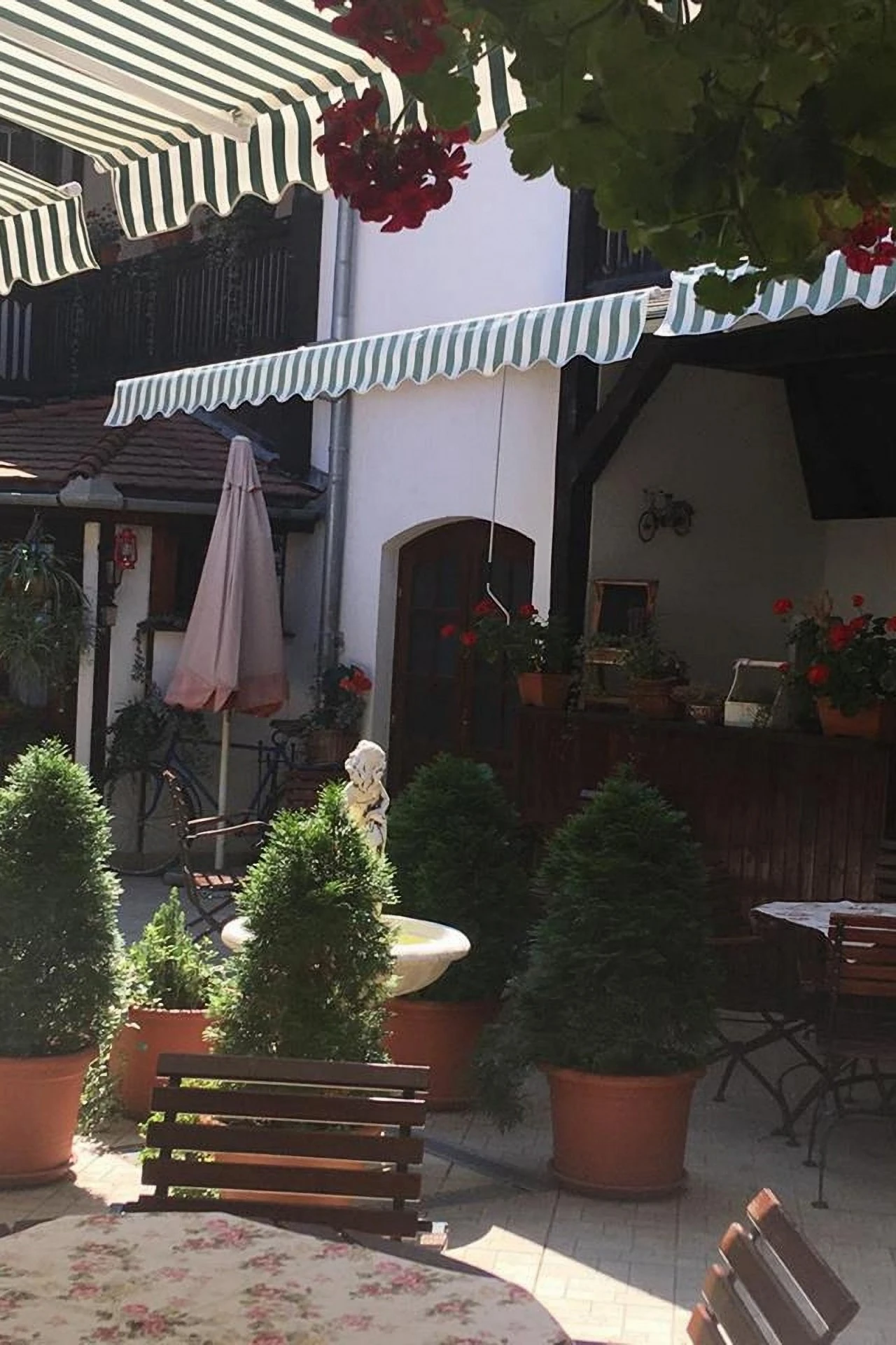 Terasa interioara (80 locuri) din umbra nucului este locul ideal pentru relaxare.