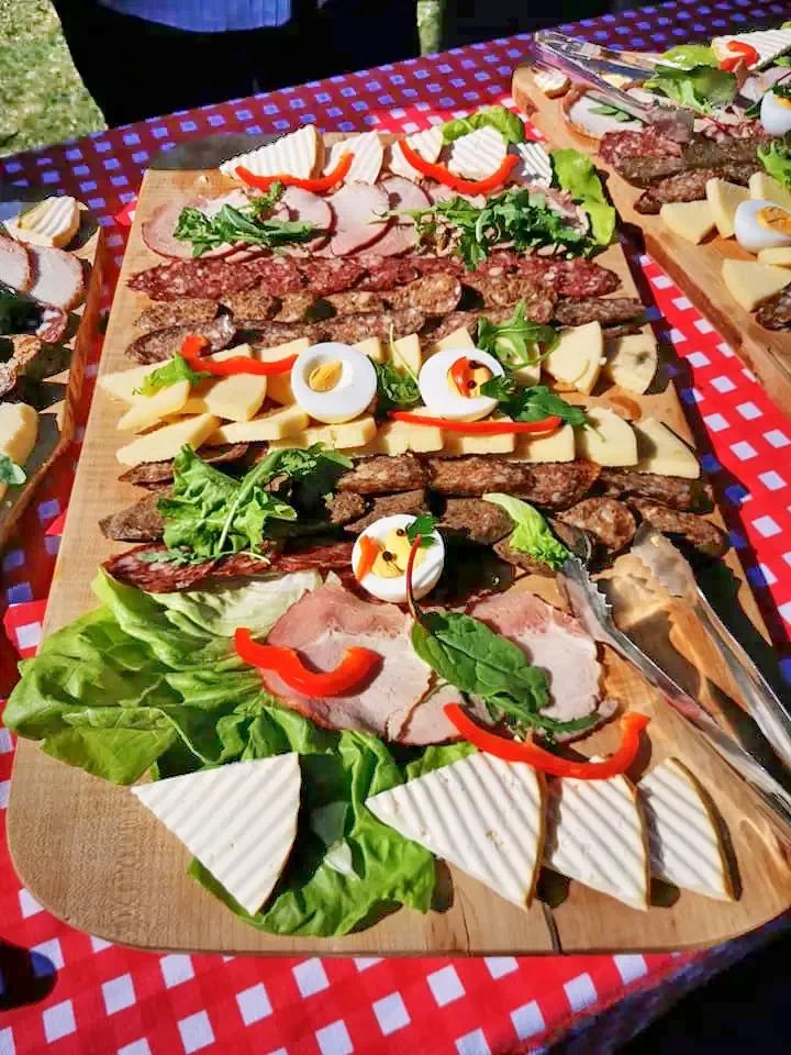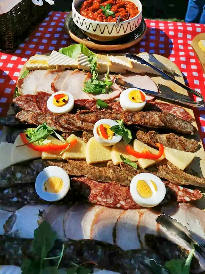 6 preparate principale, 3 garnituri, bar de salate, platouri tradiționale reci și un fel de desert