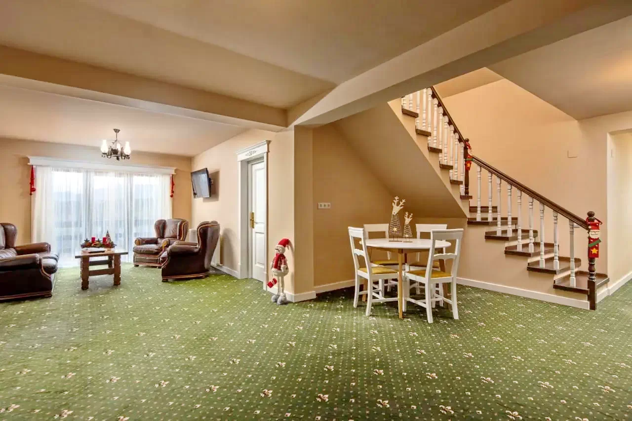 Toate acestea se afla intr-o sala destinata petrecerii timpului liber. Aici se poate fuma.
