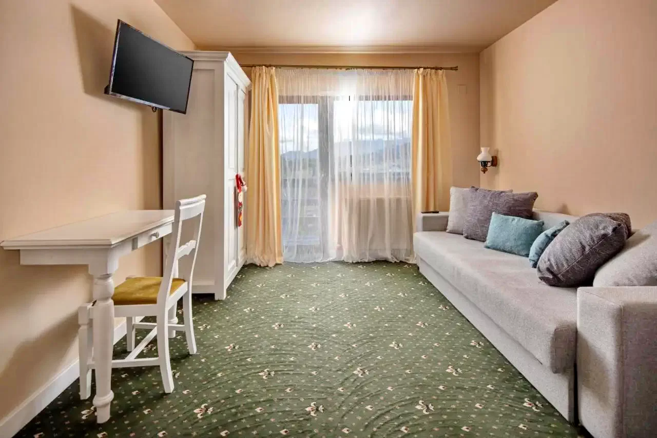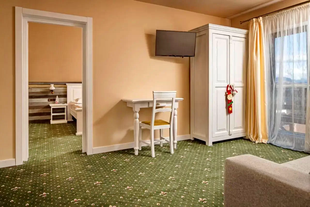 1 apartament(dormitor cu pat matrimonial + camera cu canapea extensibila pentru 2 persoane) cu vedere la munte